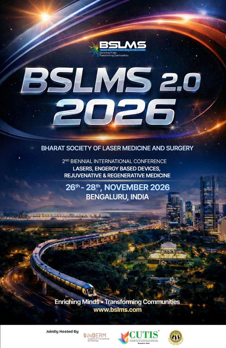 BSLMS is established to create a dedicated academic platform that promotes structured learning, responsible innovation, and clinical excellence in laser, energy-based, rejuvenative, and regenerative medicine. Building upon the success of our inaugural edition, BSLMS 2.0 has been thoughtfully designed to further strengthen scientific dialogue and practical engagement within the specialty.